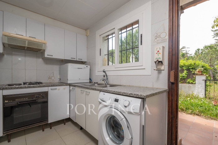 La planta baixa disposa de saló menjador, cuina, bany i 2 habitacions. També hi ha un gran espai separat que ara s'utilitza com a magatzem.