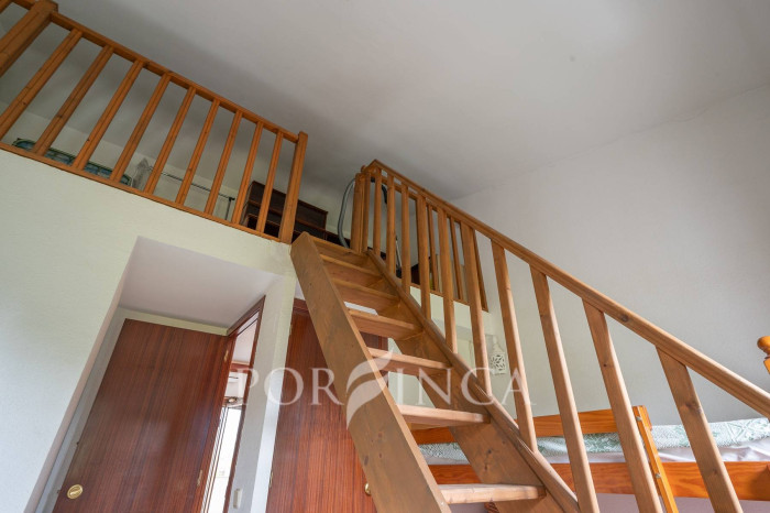 La planta superior disposa de saló menjador, cuina, bany i 3 habitacions. El saló té sortida al balcó. Hi ha una gran terrassa amb agradables vistes a les muntanyes dels voltants darrere de Calonge.