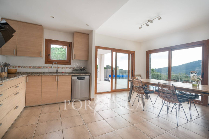 La cuina està totalment equipada, amb una península, zona de menjador i barbacoa. A més, té un ampli aparcament de 100 m², ideal per als amants dels vehicles. També disposa d'una habitació independent per a la bugaderia. El menjador i el saló són amplis, amb llar de foc i grans finestrals, connectats amb la cuina.
