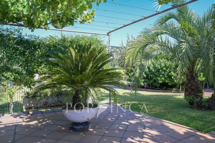 A l’exterior, la casa ofereix una bonica zona de terrassa parcialment coberta amb una elegant pèrgola d’estil eivissenc, perfecta per gaudir de menjars a l’aire lliure amb barbacoa. En un nivell inferior trobem la magnífica piscina amb vistes obertes al mar.